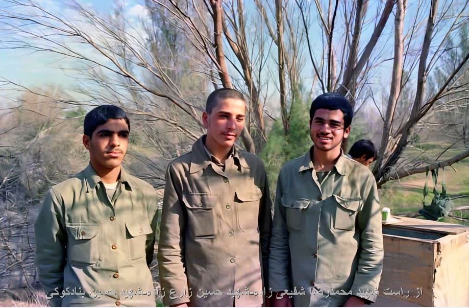 از راست:شهید محمدرضا شفیعی زاده(برادر شهیدان داود و ابوطالب)-شهید حسین زارع زاده(برادر شهید علی اکبر )-شهید حسین بنادکوکی
