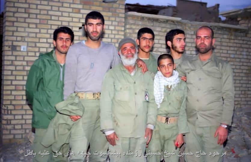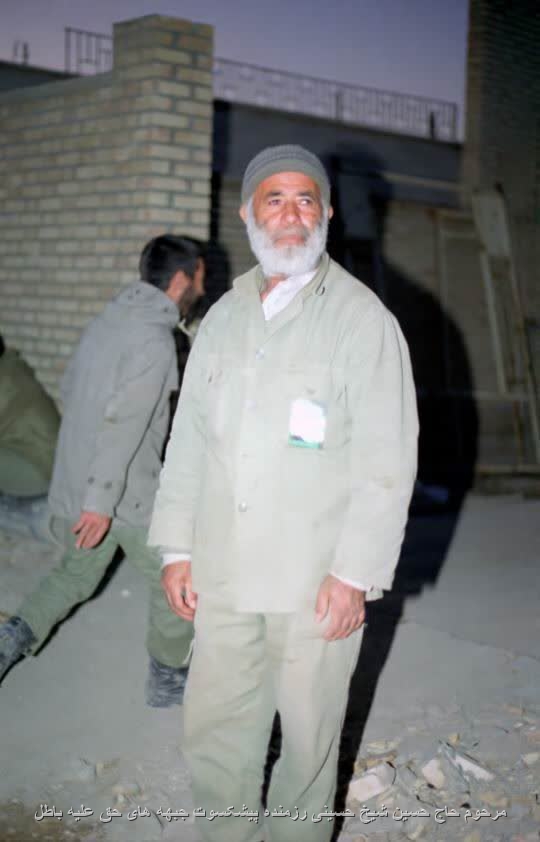 مرحوم حاج حسین شیخ حسینی از شهرستان نظرآباد رزمنده پیشکسوت جبهه های حق علیه باطل در قسمت تدارکات لشکر ده حضرت سیدالشهداء علیهالسلام-عملیات فاو - سابقه در جبهه ۱۴ ماه