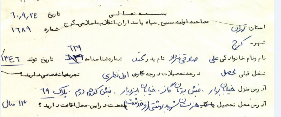 شهید علی صادقی نژادسریزدی