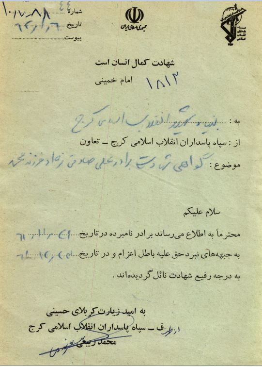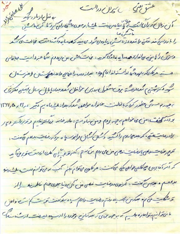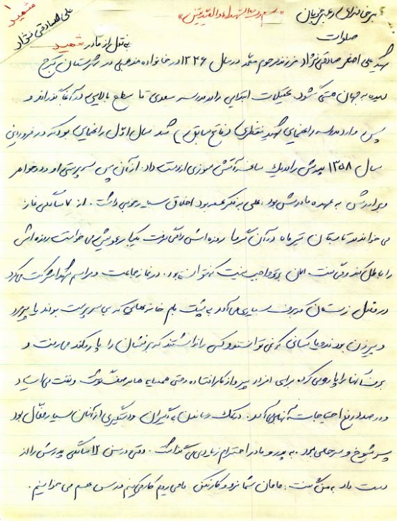 "فرازی از وصیت شهید علی صادقی نژاد"