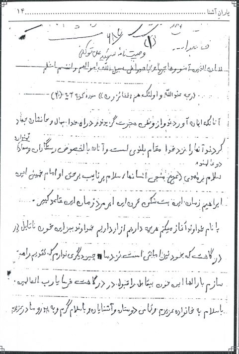 بازنویسی وصیت نامه شهید علی توکلی: