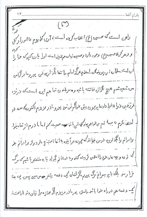 - پدر و مادر عزیزم و خانواده گرامیام،اگر من از این دنیا رفتم زیاد ناراحت نباشید.که هر کس یک روز از این دنیای مادی میرود و مرگ حق است چه بهتر که انسان در راه هدف عالی خود کشته شود.من آنقدر گناهکارم که لیاقت شهادت را در خود نمی بینم و اگر فرجی شود و خدا مرا جز شهدا قلمدادکند.نهایت آرزوی من است و از تمامی کسانی که این نوشته را می خوانندبه شدت و به واقع التماس دعا دارم که خیلی محتاج و بی چیز هستم.در نمازها و دعاها به فکر من باشید.برای من طلب مغفرت کنید،شاید خدا از تقصیرات من درگذرد.پیامم این است که «از آخرت غافل نباشید»و از دوستانم می خواهم که مرا حلال کنند و مرا بخشنند این راهی را که من انتخاب کردم،راهی است که حسین(ع) انتخاب کرده است.آری،«کل یوم عاشورا و کل ارض کربلا»و حسین زمان هم خمینی است او را یاری کنید که که خدا را یاری کرده اید.ای امت مسلمان،ای پویندگان اسلام،هرگز امام را تنها نگذارید.