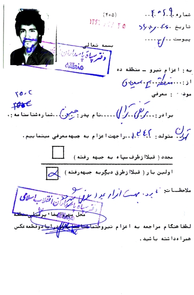 رفت بره سربازی ، سربازی گفته بودن که اگر الان می خوای بری بیا برو سپاه . این رفت سپاه قرار داد دادن بهش بعد از یه 20 روزی بصورت مأموریت برای کردستان حرکت کرد .