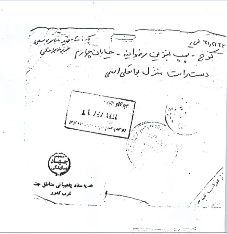 بعد از عرض سلام به پدر و مادر و خواهران و برادران و اقوام سلامتی شما را از درگاه خداوند متعال خواستارم. انشاءالله که حالتان خوب باشد. اگر از احوال اینجانب بپرسید از لطف شما خوب هستم ما در پادگان ابوذر در سرپل ذهاب مستقر هستیم ما شنبه صبح از کرج به پادگان امام حسن تهران رفتیم و بعدازظهر با اتوبوس از تهران به باختران و بعد به پادگان الله و اکبر در اسلام آباد رفتیم و از آن به پادگان ابوذر واقع در سر پل ذهاب آمدیم و در اینجا هستیم هنوز گروهان و گردان ما مشخص نشده است. راستی کارنامه ام را به حسینآقا بابای حمید عموی مجید دادهام تا به شما بدهد به پسرعمه وخانواده و حسین سلام برسانید و به عمو با خانواده سلام برسانید. به عمو ودخترعمو با خانواده سلام برسانید به نقی دایی با خانواده سلام برسانید. به حسن دایی ویحیی دایی وخاله وسلیمان دایی با خانواده سلام برسانید به تمام اقوام و فامیلها سلام برسانید. به پسر عمه علی هم سلام برسانید. با آرزوی موفقیت شما . خداحافظ عباس اسمی