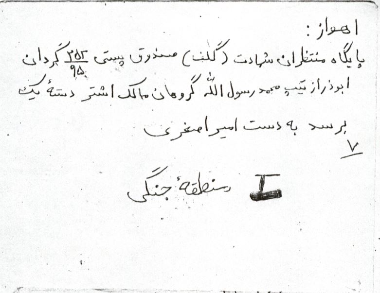 اگر به خانه حاجی رفتید به خود ابوالفضل بگوئید که پستی که قرار بود برایش بفرستم رسیده یانه؟ در ضمن به تمام اهل خانه از حاج آقا وخاله وابوالفضل وتیمور گرفته تا حمید به همه سلام برسانید وبه ابوالفضل بگوئید که بای من نامهای بنویسد ومرا ازحال خودشان آگاه کند اگر هم وقت نرفتن پیدا نکردید بابا با این شماره«898196 محیط زیست»