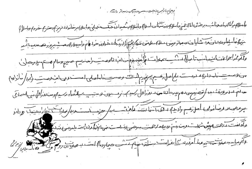 با سلام بر امام زمان (عج) و با سلام بر امام خمینی و با سلام بر شهیدان گلگون کفن و با سلام بر تمام رزمندگان اسلام و با سلام بر پدر و مادر جانم و با سلام بر تمام برادرانم و خواهرانم و تمام فامیل ها و دوستان و آشنایان پدر جان اول از شما معذرت میخواهم که به آن خواسته هایت عمل نکردم چون که من هدفم را شناخته بودم و به هدف خودم رسیدم امیدوارم که مرا حلال کنید و مرا ببخشید و جای مرا خالی در جبهه ها نگذارید و بعد با معذرت خواهی از مادر عزیزم که از اول من خیلی خیلی شرمنده هستم امیدوارم که مرا حلال کنند و مرا ببخشند که او را ناراحت می کردم و او نباید برای من گریه کند و مرا بببخشد و افتخار کند که پسرش در راه خدا شهید شده است و از تمام برادرانم و خواهرانم حلالیت می خواهم و امیدوارم که هر چه از من بدی دیده اید مرا حلال کنید و جای مرا در جبهه خالی نگذارید و پدر جان اگر پول مرا گرفته اید از سپاه یعنی پول قبلی که به جبهه رفته بودم من چهل تومان به عکاس نظر آباد عکاسی مهران بدهکارم و 20 تومان به محمد بدهکارم امیدوارم که پول را به آنها بدهید و از آنها حلالیت بخواهید دیگر عرضی ندارم به جز دوری شما شب عملیات وصیت نامه من در دست علی اصل زغیم است راه مرا ادامه دهید .