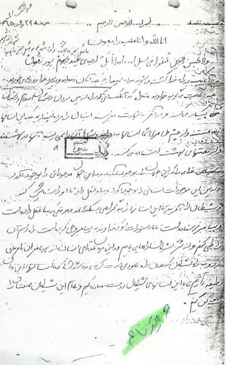 نامه هایش دست پدرم بود. قبلش دست مامانم بود مامانم در یک صندوقچه ای گذاشته بود همه آثار و یادگاری هایش در آن صندوق بود نامه ها و لباس هایش خیلی دنبال جعبه گشتم ولی نمی دانم چی شد. همه محتویاتش با هم نیست.