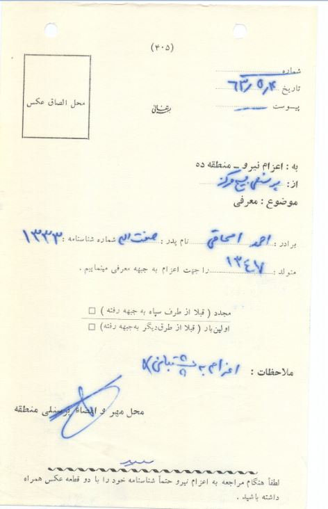 - 4 بار اعزام شدش اونوقتم... نه.. 5 بار اعزام شد ششمین بار مفقود شد.