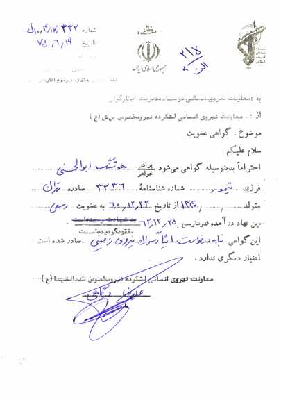 تاریخ شهادت : 3-12-1362 شمسی