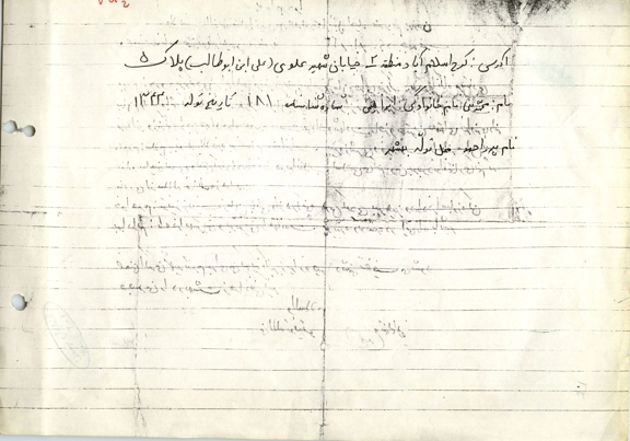 آدرس : کرج اسلام آباد منطقه 2 خیابان شهید علوى (علىبن ابیطالب ) پلاک5 محمد ابراهیمى شماره شناسنامه:811 تاریخ تولد:1344 نام پدر: احمد محل تولد : بهشهر