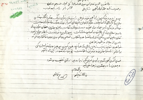 وصیتنامه محمد تقى ابراهیمى در تاریخ 23/10/60 در جبهه غرب